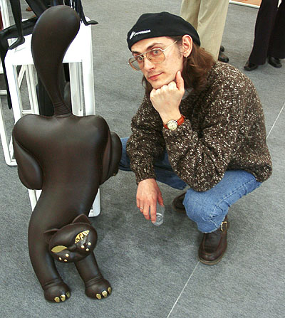 Москва, Манеж. Это как раз кот, сделанный из кожи, Татьяной. 17.04.2001